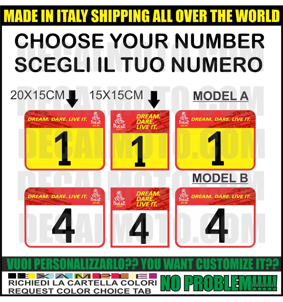 5. il kit viene composto dai pezzi mostrati in inserzione, se dovessero mancare degli adesivi siete pregati di chiedere prima dell'acquisto, se codesti sono inseriti o meno nel kit. (essendo replicati da moto datate potrebbero mancare e per questo non stiamo stati in grado di riprodurre tutti gli adesivi). non si accettano contestazioni una volta ricevuti.